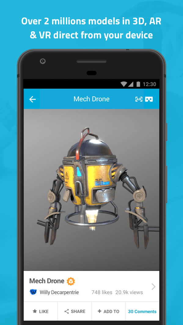 - Search for an object using a keyword or upload your own 3D object to your Sketchfab account